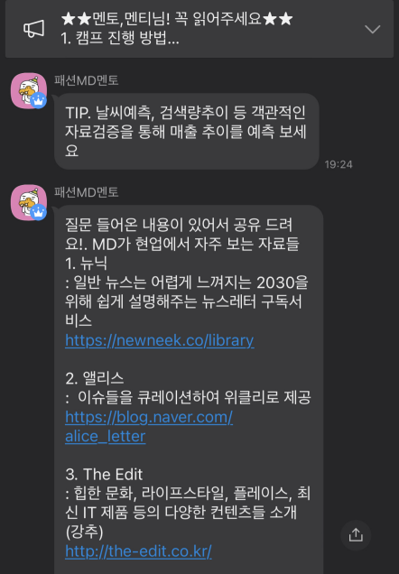 과제할때 팁이나 평소에 트렌드 분석하는 팁을 주셔서 감동..♥