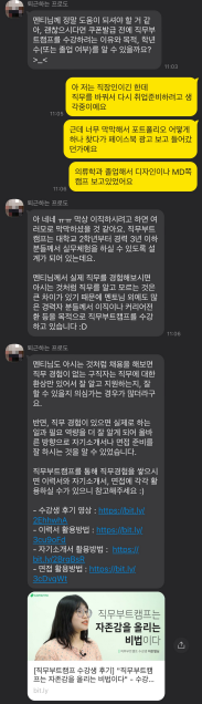 캠프가 끝났다고 단톡방이 바로 폭파된것도 아니고 취업공고도 공유해주실정도로 정이 많은 멘토님..ㅠ